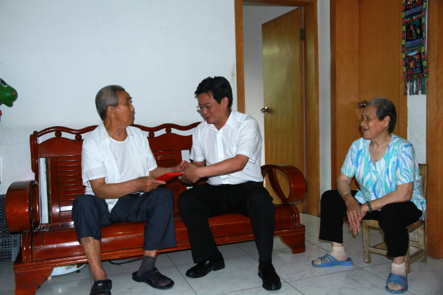 本网讯(谢翀)7月1日,是党的生日。当天下午,区委书记蔡邦银在区委常委、副区长、组织部长张开翅陪同下,亲切看望慰问我区部分老党员和困难党员,为他们送去节日的问候和党的关怀,希望他们继续发挥余热,为“实现伟大中国梦,建设美丽新朝天”再作贡献。
