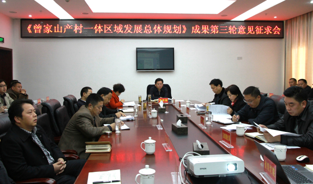 会议听取审议了规划设计单位就曾家山产村一体区域发展总体规划工作涉及的规划依据、发展目标以及产业结构等情况的汇报,与会人员对规划提出完善意见。