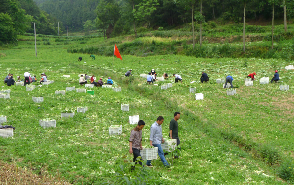 “大家加快速度收菜,收购车已经来了,上午就要把菜运到成都去哟。”临溪乡乡长张明光大声吆喝。