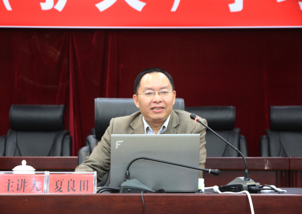 夏良田教授以《治蜀兴川 重在厉行法治》为题,采用“以案释法“的形式,对《四川省依法治省纲要》出台的背景、主要内容进行了深刻地解读,并结合朝天实际,就如何抓好《四川省依法治省纲要》,推进依法治区工作提出了宝贵的意见和建议。与会人员一致认为,此次的讲座进一步提高了我区广大干部职工的法治意识,为推动政府职能转变、提高政府行政效能,加快推进依法治区进程注入了强劲的理论基础和精神动力。