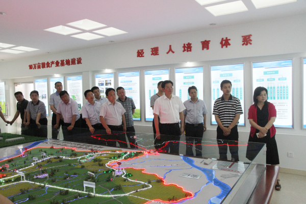 在崇州市隆兴镇10万亩粮食高产稳产高效综合示范基地,曾接受《焦点访谈》专访的80后农业职业经理人周维松围绕“种什么样的田”、“谁来种田”、“怎样种田”等问题,给考察团上了生动的一课。据了解,崇州市通过培养农业职业经理人,探索并成功实践了以农村土地承包经营权股份合作社为核心,新型的农业科技服务、农业社会化服务农业品牌化服务、农业金融服务等四大服务为支撑的“1+4”新型农业经营体系,着力培育农业职业经理人队伍,加快了农业发展方式转变,推动了土地适度规模经营和粮食规模经营,开创了粮食规模生产新局面。蔡邦银说,崇州市土地综合整治以及运用产权制度改革成果发展乡村产业,改善农民生活条件的先进做法,找准了农村土地改革的结合点,实现了经营主体多元化,经营方式多样化,尤其是“1+4”新型农业经营体系有效解决了土地撂荒,群众种粮积极性不高这一现代农业发展的瓶颈,各乡镇、各部门要认真学习先进方法,积极总结经验,努力在全面深化农村改革加快推进农业现代化进程中形成朝天特色。