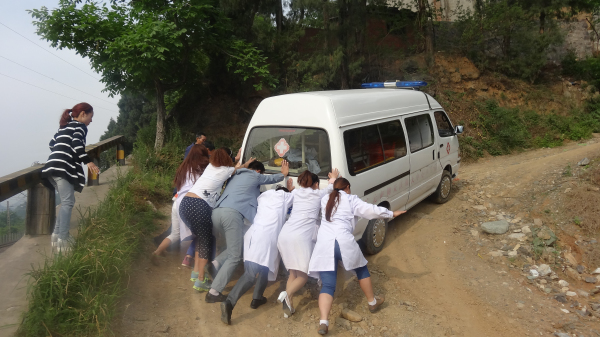 “很多时候,汽车到不了的地方他们就坐摩托车,摩托车去不了的地方就只能步行,为了把医疗设备和药品送下去,上坡子推车、雨雪天填路简直就是‘家常便饭’了!”一直与大伙儿没离开过的司机老安说到。