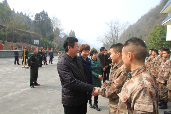 在区人武部、区交警大队、区消防大队、某部队驻地慰问时,蔡邦银、伏玉琼等四大班子领导一行与全体驻朝官兵、消防官兵和公安干警一一握手,称赞他们是特别能吃苦、特别能战斗的队伍。希望大家在2015年工作中,严格按照习近平总书记“听党指挥、能打胜仗、作风优良”的要求,牢记宗旨、不辱使命,进一步加强军政军民团结,服务中心工作,服从区委领导,为朝天经济社会发展再立新功,为构建平安和谐朝天作出新的更大贡献。