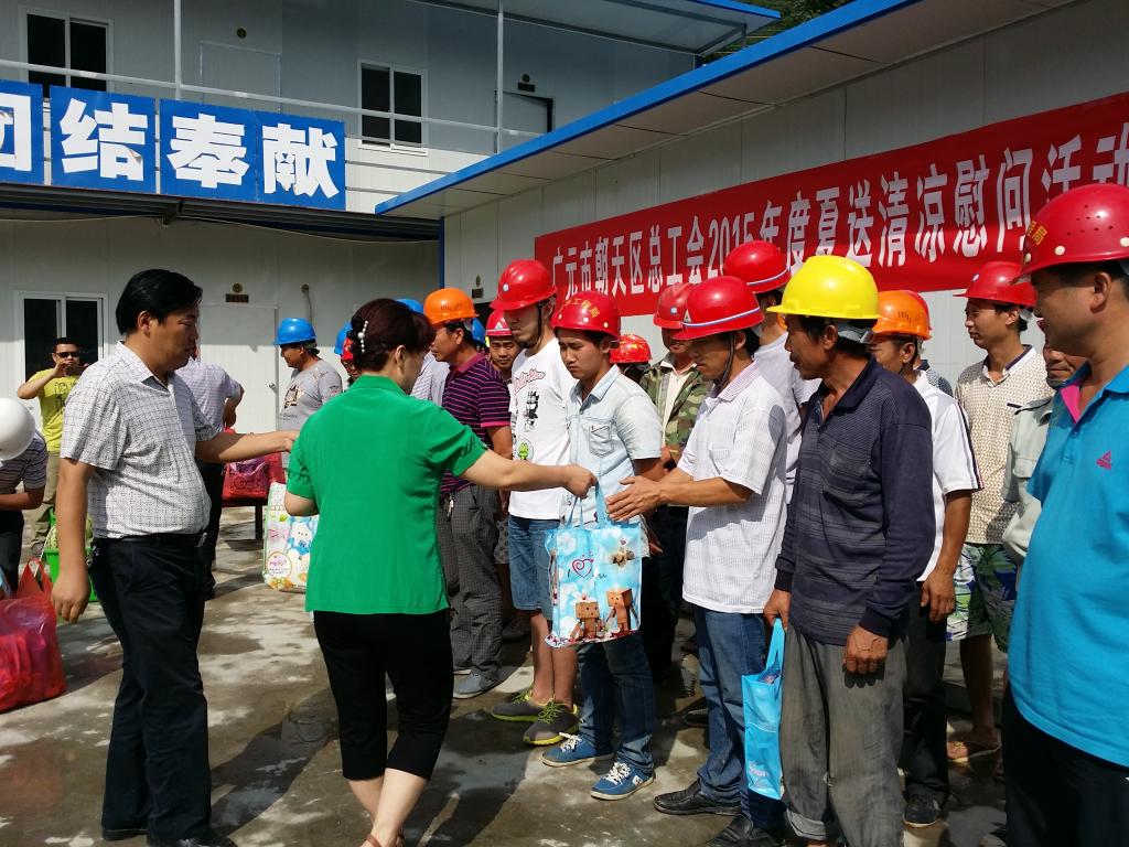 “最近天气十分炎热、大家依然坚守自己工作岗位,十分辛苦,大家一定要注意防暑、注意安全、保重身体,发扬不怕苦、不怕累的精神按质按量完成各项工作任务。”王天会代表区委、区政府、区总工会对一线企业职工、农民工表示亲切慰问,她叮嘱职工朋友们一定要注意防暑降温。她要求,全区各级工会要积极开展好“夏送清凉”慰问活动,保护好一线职工的健康安全,让全区职工在盛夏之际身爽心暖。