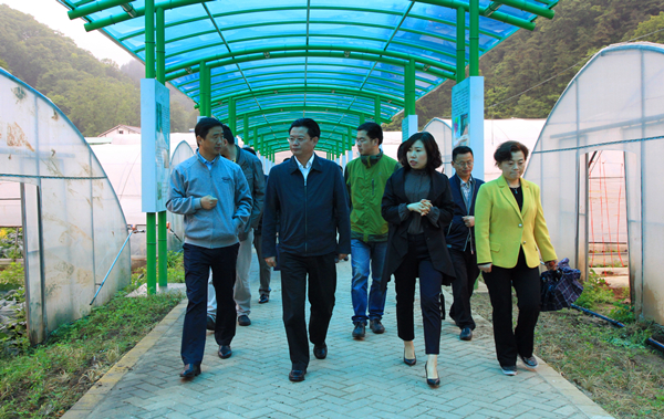 一座座高标准瓜果蔬菜大棚次第相连,颇具规模,鲜嫩的辣椒、茄子等曾家山特色蔬菜长势喜人、丰收在望。在平溪现代农业(蔬菜)示范园区,蔡邦银要求,要进一步加大宣传力度,将旅游、采摘体验等元素融入园区建设,做好农旅结合的文章,提高园区综合效益;要以供澳蔬菜为契机,进一步抓好园区改造升级,确保供澳蔬菜基地建设各个环节达到蔬菜安全标准;要严格按照供港澳蔬菜检验检疫监督管理办法,进一步健全产品质量监管体系,确保产品质量安全,切实朝天蔬菜的知名度和市场竞争力,辐射带动全区农业特色产业发展,把我区打造成优质农产品供澳基地。
