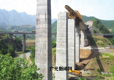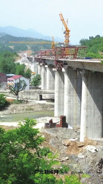 不断拉长的桥梁、忙碌不停的工人、来往的混凝土罐车……5月26日,朝天区转斗乡境内的西成高铁建设如火如荼。