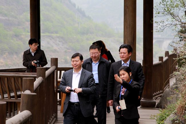 4月11日,国家开发银行四川分行行长王中赴朝天区参观考察明月峡国家4A级旅游景区。市人民政府副市长元方,区委书记蔡邦银陪同考察。