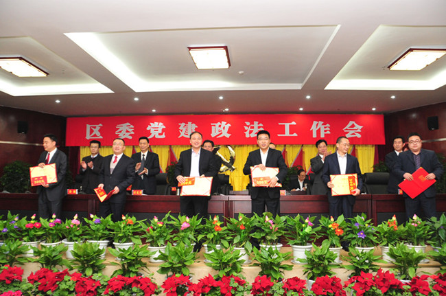 会议还对党建政法工作先进集体和个人进行了表彰,区委副书记卢达昌宣读了表彰决定。