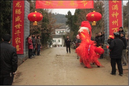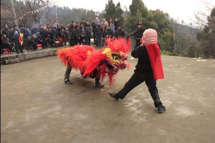 耍狮子是当地一个传统文化项目,已有几百年的历史,每逢过年,便有几只舞狮队从各个山村开舞,到了正月初二。分别集中于场镇,然后开始斗狮,各队都将拿出看家本领,施展各派绝技,演绎各种阵势,已获得更多赞赏和喜财回报。舞狮一般节目有南桥吸水,孙二娘推磨等。为增加节日气氛,也是故意考验各狮队的技能,接到狮队拜帖的主人家,提前在自己的院坝摆出高难度阵势,如猛虎下山,大炮冲天等,让舞狮队尽其全能。随着农村文化水平的逐步提高,有的主人家还摆出一些疑难杂阵,让南门先生下不了台,还得向主人家多说吉利话以讨饶破阵,舞狮的场面即热烈且有情趣,观狮老少笑逐颜开,其乐融融。