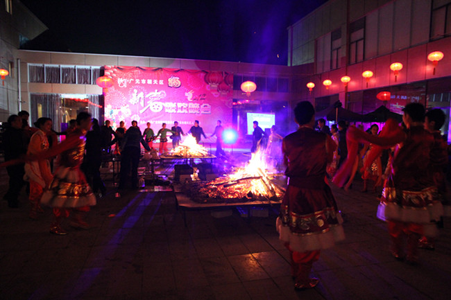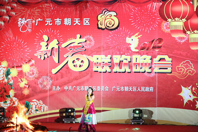 本网讯(记者刘保刚文/图)1月18日晚,朝天区春节文艺联欢晚会在舞蹈《请到朝天逛一圈》中拉开了帷幕:嘉陵江畔乐声阵阵、激情飞扬,舞台上、篝火旁,歌如海、人如潮,全区干部群众欢聚一堂拥抱激情之夜。