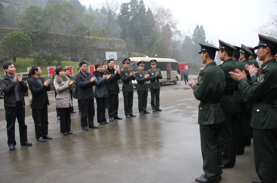 在驻朝某部队、区人武部、消防大队、交警大队慰问时,蔡邦银、伏玉琼与全体驻朝官兵、消防官兵、公安干警一一亲切握手,感谢大家为推进我区经济社会发展、维护社会和谐稳定所作的积极贡献。同时希望进一步加强军政军民团结,继续发扬优良作风,一如既往地为我区经济社会发展保驾护航,为建设生态文明繁荣和谐新朝天作出应有的贡献。