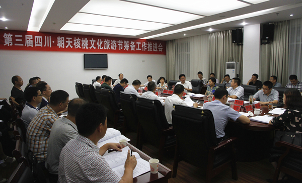 在听取了各相关部门负责人对相关筹备工作情况汇报之后,蔡邦银指出,举办2016四川花卉(果类)生态旅游节分会场暨第三届四川·朝天核桃文化旅游节,是深入贯彻区第七次党代会决策部署,挖掘、展示我区丰富的文化旅游和农特产品资源,深化开放合作、凝聚发展合力,鼓舞干群士气、提振发展信心,宣传推介朝天,助力脱贫攻坚的重要途径。他要求,各级各部门要进一步统一思想,充分认识本次核桃文化旅游节的重要意义,切实增强紧迫感和责任感,全力以赴做好各项筹备工作;各有关部门、乡镇要各司其职,密切配合,确保筹备工作扎实有序推进;各工作组要细化工作方案,严格按照职责分工,统筹考虑、仔细研究、精心策划,推动工作尽快落实,确保节会活动取得圆满成功。