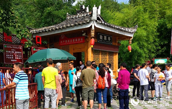 游客在川洞庵景点验票口等待检票。(张玉伟 摄)
