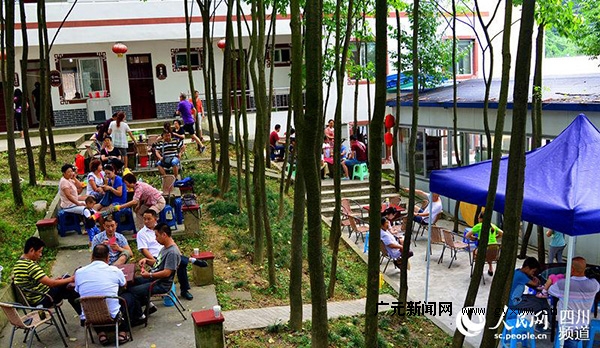 游客在曾家山上的农家乐内休闲避暑。(张玉伟 摄)