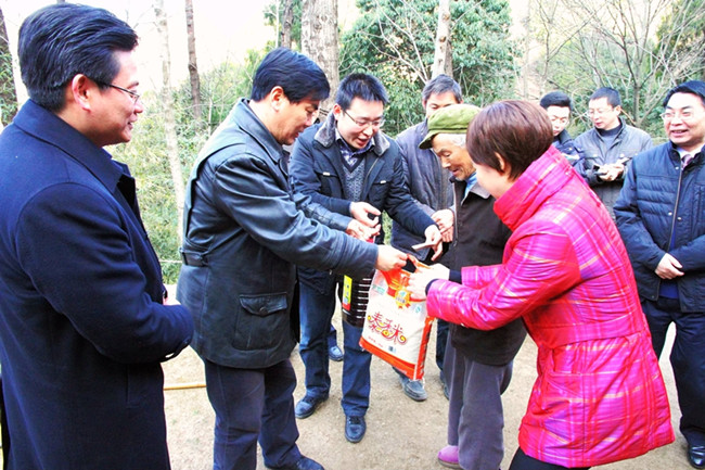 山下海拔500米、温度4℃,山上海拔900米、温度0℃。罗强一行驱车沿着盘山村道爬上蒿地村三组,走进徐子珍、杨永志等村民家,察看他们的粮食够不够吃、穿盖暖和不、有没有过年肉吃、有没有取暖的柴火,还有什么需要帮助解决的困难,并送上慰问品。徐子珍的家虽然是土木结构的房子,但是看到玉米棒子挂满房梁、粮食堆放不少、挂起了腊肉、吃上自来水、看上彩电、取暖用柴火炉,罗强很放心。“吃饭没有问题,过冬没有问题,只等着儿子儿媳打工回来过年了。儿子的房子搬到山下修了,山上只住着我和老伴!”徐子珍对罗强说。杨永志与徐子珍的家庭情况差不多。罗强叮嘱他,要穿暖和、保重身体。
