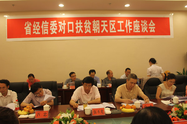 会上,伍丕光表示,省经信委会进一步加大对朝天的对口扶贫帮助,通过深入调研,把对朝天的扶贫规划和朝天本地的建设规划及省经信委的工作紧密结合起来,特别是要加大对朝天工业的规划帮扶力度;要进一步落实对朝天的项目帮扶,突出矿产资源的转化、农特产品加工、对外承接产业转移、工业园信息化建设等帮扶重点,在资金、政策上给予更多支持。要创新帮扶机制,建立省经信委与地方的对口定点扶贫工作机制,加强委地干部互派交流,主动加强对接工作,不仅要把项目实施好,更要通过帮扶实现“造血”,通过新机制共同推进对口扶贫工作。