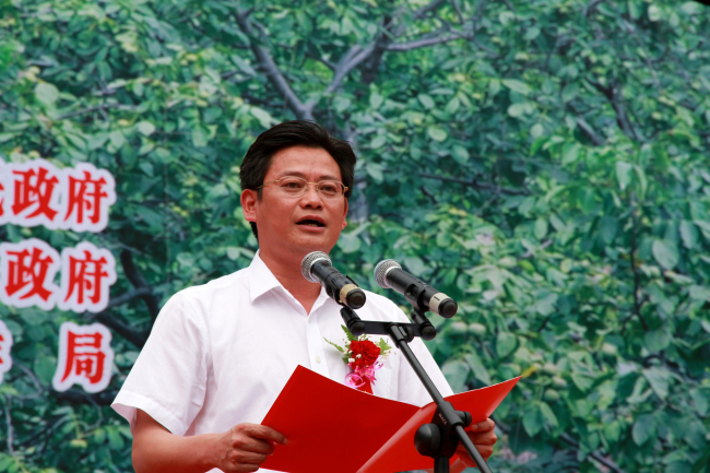 蔡邦银代表中共广元市朝天区委、区人大、区政府、区政协和21万朝天人民,向光临节会的各位领导、各位嘉宾、各界朋友表示热烈的欢迎!蔡邦银向各位领导和嘉宾介绍了朝天区基本情况和核桃产业发展情况。我区在认真分析区情、准确把握优势和劣势的基础上,确立了“一亩良田稳温饱,十亩山地奔小康”的发展思路和“生态建设产业化,产业发展生态化”的总要求以及“建设川陕甘规模最大的核桃交易集散地和全国知名、全省最大的核桃生产和加工基地”的总体目标,把核桃产业作为发展农村经济、增加农民收入的主导产业和优势产业来抓,掀起了一轮又一轮核桃产业发展高潮。特别是去年以来,我们以四川省林业产业发展现场会参观朝天为动力,突破性推进核桃产业发展,并深度推进核桃养生文化、核桃创意旅游发展,使农业产业化与新型工业化、新型城市化相互促进、相互推动、相互融合,探索走出了一条盆周山区生态林业富民的特色发展之路。截至2011年底,全区累计发展核桃基地25万亩630万株,人均拥有1.2亩核桃;核桃年产量首次突破万吨大关,连续三年位居四川省县区首位;农民人均从核桃产业获得收益2000元以上,占全区农民人均纯收入将近一半。当前和今后五年,朝天有决心有信心在党中央国务院、四川省委省政府、广元市委市政府的坚强领导下,在国家、省、市相关部门、友好县区和社会各界的大力支持下,围绕“加快振兴发展、推进全面小康”主题,大力实施“四化联动、文化推动、民生带动、创新驱动”战略,加快构建“三中心三基地”(把朝天基本建成广元城市北部中心、川陕结合部物资集散中心、川陕结合部区域文化中心,建成全国知名的新型能源和新型建材生产基地、全国知名的绿色农特产品生产加工和出口基地、全国知名的蜀道文化旅游和生态养生基地),奋力实现“三个翻番”(地区生产总值、地方公共财政收入、工业增加值实现翻一番)和“四个更加”(经济更加发展、文化更加繁荣、生态更加优良、人民更加幸福),为实现全面小康奠定基础,加快建设生态文明繁荣和谐新朝天。力争到2015年,全区核桃种植规模达35万亩1000万株,人均拥有核桃1.5亩以上,全区核桃产量实现3万吨以上,年人均核桃纯收入达3000元以上,将朝天区建成川陕甘规模最大的核桃交易集散地和全国知名、全省最大的核桃生产加工基地。