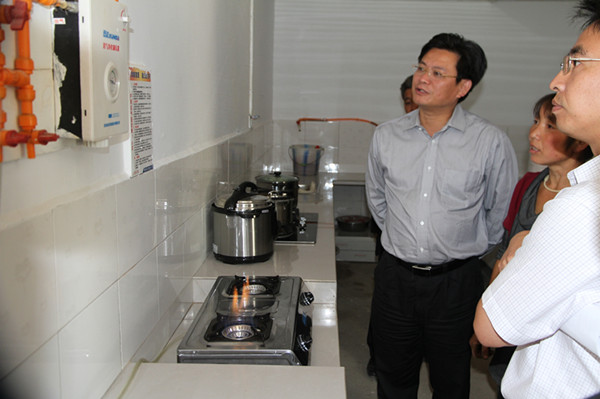 金秋时节的临溪乡桃树村,焕然一新的川北民居掩映在青山绿树之中,田间路旁处处是采摘、收购蔬菜的忙碌景象。蔡邦银与大伙儿亲切交谈,了解村民人居环境改善、家庭经济收入等情况。“几年前,我们种的蔬菜和粮食,要费尽周折才能运出去卖掉,如今,政府把水泥路也修到了我家门前,出行、生产方便多了,现在我们只管种好,到时候车开到地头,直接运走。我们家今年种了4亩多甘蓝和辣椒,还有核桃的收入,收益还是很不错的!再加上政府的‘一建三改’项目,我们也吃上了自来水,用上了沼气”。桃树村 4组的村民杨文海边说边打开沼气灶,让大家感受他家现在红红火火的新生活。看到村容村貌整洁有序,群众生产生活积极,蔡邦银很是高兴,鼓励大家继续发扬自力更生精神,与当地政府一道,通过新农村建设进一步改善生产生活条件;因地制宜发展蔬菜、核桃和土鸡等产业,不断增加家庭收入。