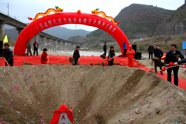本网讯(谢翀)彩虹卧波架金桥,玉带连城铺银路。11月22日上午,嘉陵江畔人山人海,旌旗飘扬,朝天区飞仙关嘉陵江大桥开工仪式隆重举行。区委书记蔡邦银出席开工仪式并宣布项目开工,区委副书记、区长伏玉琼出席开工仪式并致辞,区人大常委会主任梁黎,区政协主席贾光升出席开工仪式,区委常委、政法委书记张晓春主持开工仪式。