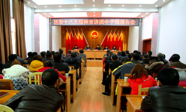 区委十八大精神第一宣讲团成员,中子镇全体机关、村、组干部,党员代表,群众代表近100人参加宣讲会。