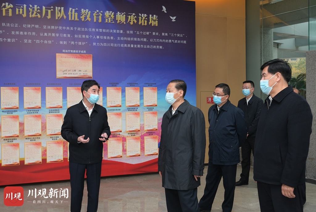 12月6日,省委书记彭清华前往省法院、省检察院、司法厅,了解党的十九届六中全会精神学习宣传贯彻情况,调研第二批政法队伍教育整顿中央督导反馈意见整改落实及“回头看”工作。他强调,要深入学习贯彻党的十九届六中全会精神,全面落实省委十一届十次全会部署要求,扎实抓好中央督导反馈意见整改落实及“回头看”工作,切实筑牢政治忠诚,着力锻造一支忠诚干净担当的新时代四川政法铁军。
