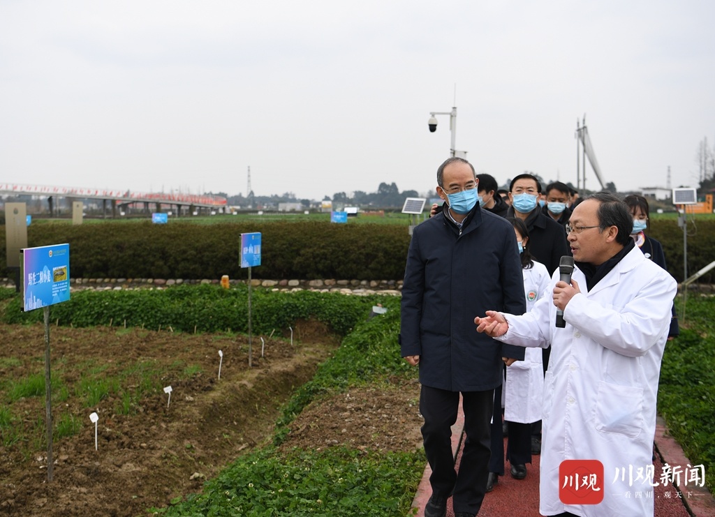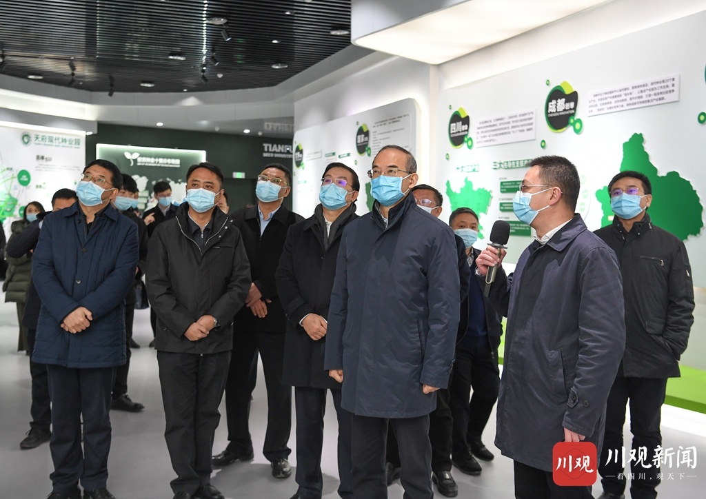 黄强还前往天府现代种业园,了解园区规划建设、种业科研创新、培育成果转化和四川种业发展等情况,深入试验田察看油菜、小麦等种质资源保护、新品种选育和开发利用成果,走进国家品种测试西南分中心了解繁殖材料低温保藏等情况。黄强向种业专家们致以新春问候,要求加大支持力度,加快园区建设,聚焦主业、紧盯市场,创新体制机制、完善运营模式,激发科研人员积极性,切实肩负起引领“川种”再创辉煌重任。