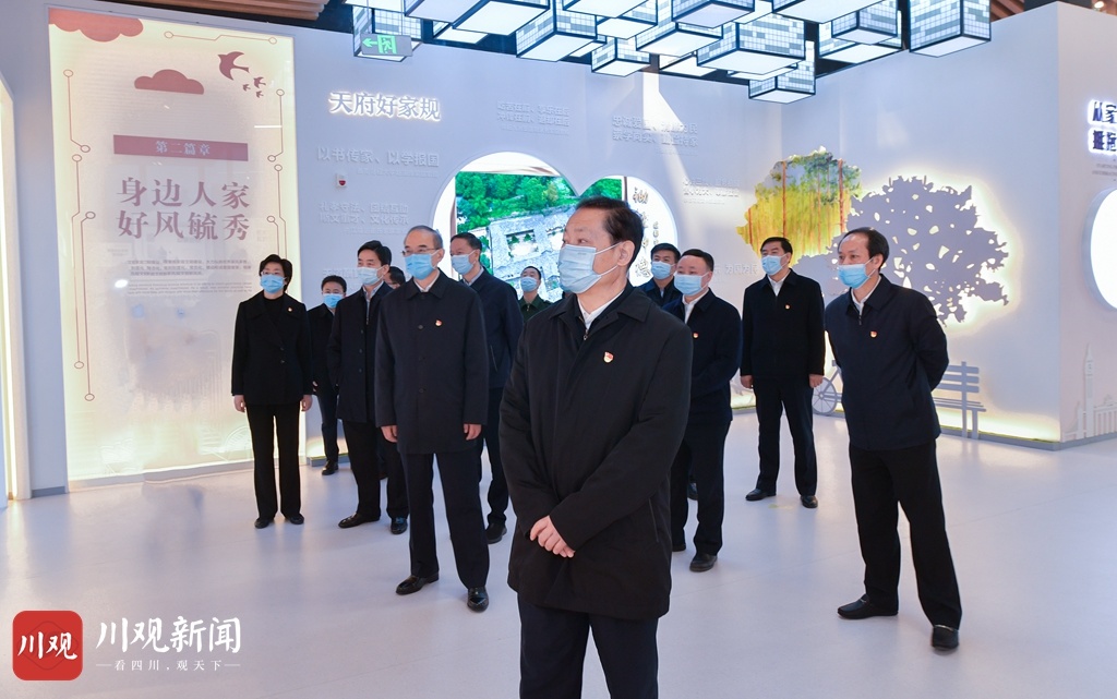 天府家风馆坐落于成都市新都区斑竹园街道升庵村,是我省家风文化最集中、廉洁教育资源最丰富的综合性展馆,也是目前国内规模最大、内容最丰富、表现形式最完备的家风家教主题展馆。调研参观中,彭清华、黄强等省领导先后走进序厅、先贤家风展厅、红色家风展厅、战地家书剧场专题展厅、当代家庭展厅和时代新家展厅,观看文字、图片、视频等资料和实物,了解全省组织开展家庭家风主题宣传教育情况,重点学习新民主主义革命时期、社会主义革命和建设时期、改革开放和社会主义现代化建设新时期特别是党的十八大以来涌现出的典型模范人物的家教家风,自觉接受优秀家教家风文化浸润,汲取红色优良家风的智慧和养分。
