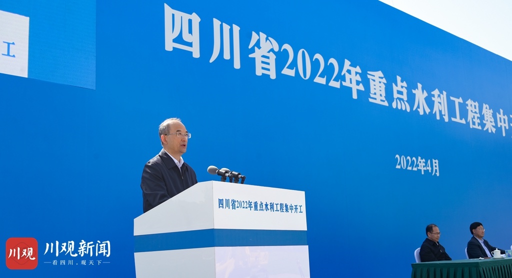 4月20日上午,四川省2022年重点水利工程集中开工。省委书记彭清华宣布集中开工,省委副书记、省长黄强讲话。