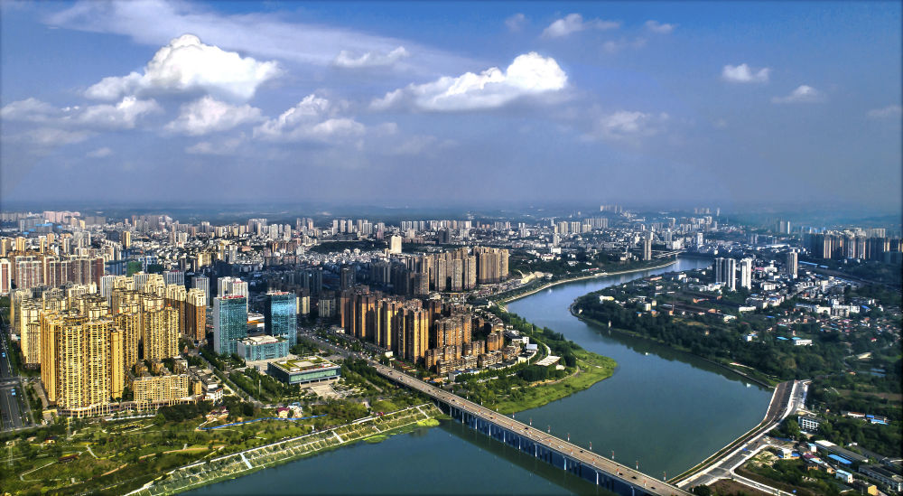 从四川省内江市城区穿城而过的沱江(2020年5月31日摄,无人机照片)。新华社发(王斌 摄)