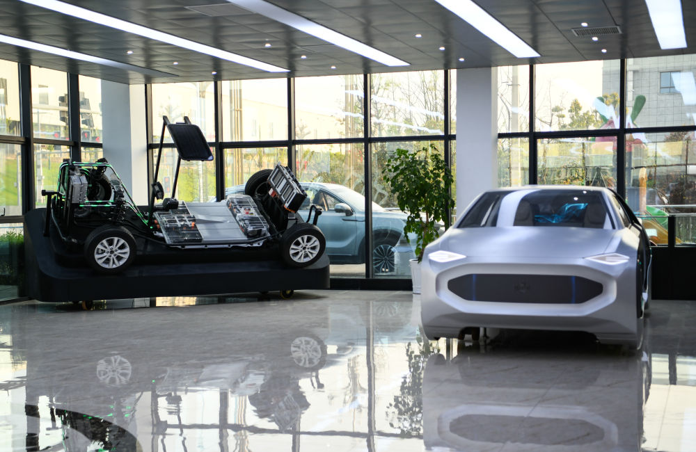 在四川省广安市邻水县川渝高竹新区一家企业展厅内拍摄的展车(2021年3月24日摄)。新华社记者 王曦 摄