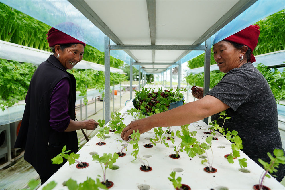 四川省昭觉县四开镇好谷村涪昭现代农业产业园内,农户在进行芹菜苗移栽(2022年6月18日摄)。新华社记者 刘琼 摄