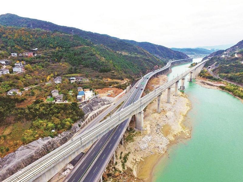 西成高铁与广陕高速在广元境内交汇。广元日报全媒体记者 刘仁 摄
