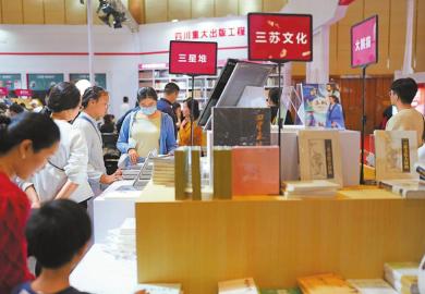 年度主宾团、江苏凤凰出版传媒集团的展区里,设有瀑布流大屏,分类展示着《江苏文库》数据库古籍资源。据介绍,已上线古籍图书980多种,充分运用人机交互、小程序等,为读者提供沉浸式阅读体验。“凤凰好书”精品台上展示的《本巴》《有生》《金色河流》《尘世三部曲》《漫话东坡》等书籍,被不少读者买走。