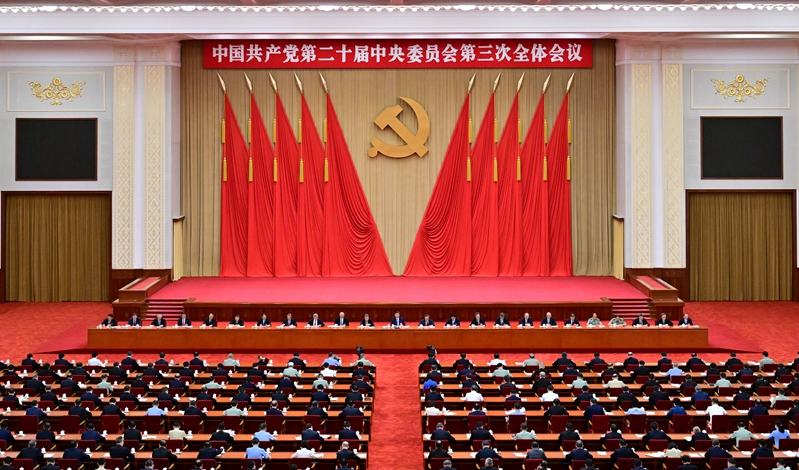 中国共产党第二十届中央委员会第三次全体会议,于2024年7月15日至18日在北京举行。中央委员会总书记习近平作重要讲话。新华社记者 鞠鹏 摄