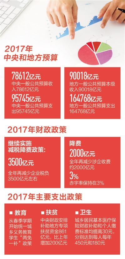 还有不少钱是省出来的,压缩一般性支出,节用裕民。2017年,财政将继续减少政府部门“三公”经费等一般性支出,腾出更多财力投入民生等领域。