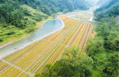 还有一串红、美女樱、松果菊……温婉婀娜、风情各异的高山花卉,或是路旁一片,或是河畔一圈,或是这里一丛那里一树,打着苞、吐着蕊,将美好与憧憬装满行囊。