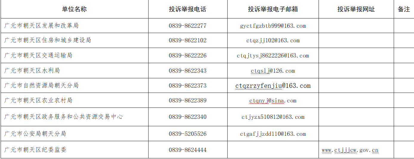 广元市朝天区工程建设项目招投标领域投诉举报和问题线索征集渠道