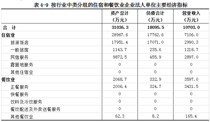 2023年末,住宿和餐饮业企业法人单位资产总计31036.3万元,比2018年末增长27.3%;负债合计18095.5万元,比2018年末增长312.5%。