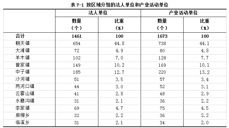 在第二产业和第三产业法人单位中,位居前三位的乡镇分别是朝天镇、中子镇、曾家镇。