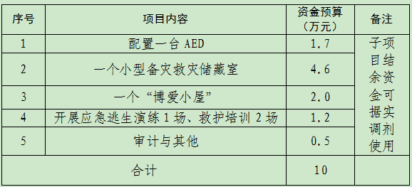 项目预算金额为10万元,资金来源为2025年中央专项彩票公益金支持地方社会公益事业发展资金项目——“四川省革命老区城镇社区博爱家园项目”专项资金。资金将按照《政府采购法》及相关规定进行使用,确保资金使用的透明、合规。具体的预算安排如下: