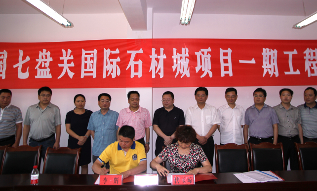 本网讯(杨春恩)6月7日上午,朝天区与四川金辉石业有限公司举行“中国七盘关国际石材城项目一期工程”签约仪式。副市长元方,市招商局局长赵平,区委书记蔡邦银,区委副书记、区长伏玉琼,四川金辉石业有限公司董事长李辉出席签约仪式。