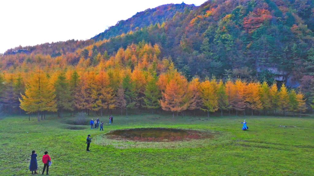 时值深秋,我区曾家山喀斯特彩林核心区鸳鸯池森林公园,数以万计的落叶松树格外艳丽,翻红的树叶在阳光的照射下呈现出五彩斑斓的颜色,美不胜收。
