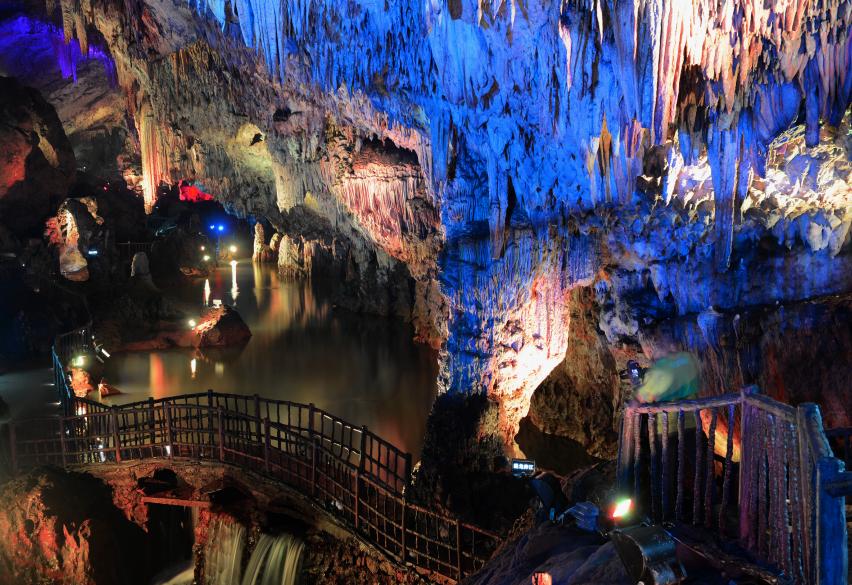 雪溪洞全长8000多米,洞中石幔、石花、石笋、石柱,拟物状人,巧夺天工。洞中的每一根钟乳,每一片岩壁,都是一件精美绝伦的天然雕塑,地设天造了这座神奇的地下仙宫。
