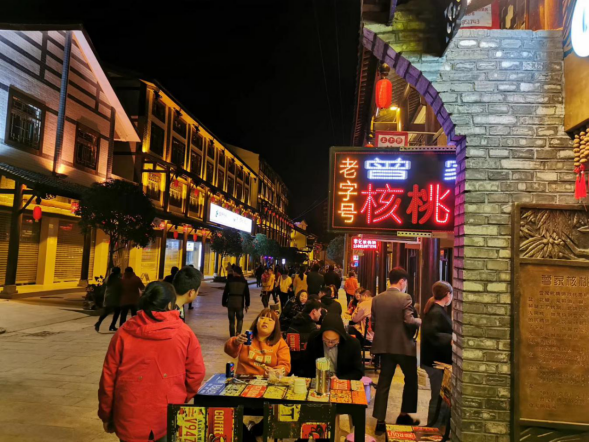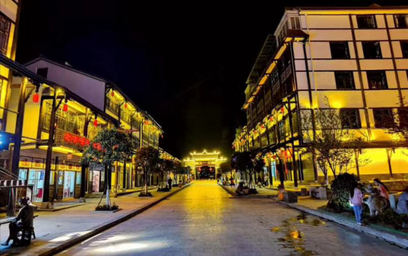 随着夜幕降临,流光溢彩的老街如画卷般徐徐展开,热闹场景丝毫不逊色白天。“来客了,再搬一套桌椅板凳出来哦。”街边烧烤摊老板一边烤着诱人的美食,一边朝着店内吆喝道。土灶锅里炖着的柴火鸡香味与对面茶馆里冲泡的高山养生茶香混合交融,弥漫了整条老街。