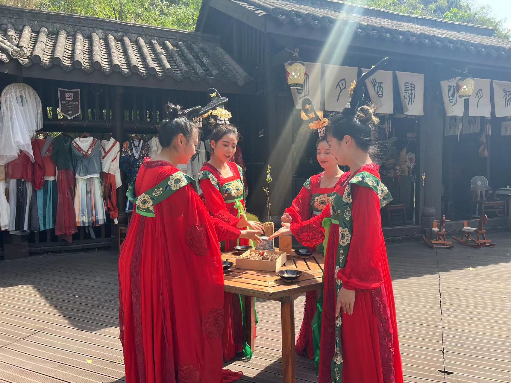 蜀山青苍、嘉陵水碧、古栈逶迤,暮春时节的明月峡,美不胜收。走进活动彩排现场,明月峡景区北门,威武雄壮的士兵吹起号角、擂响鼓声,挥舞着猎猎旌旗,迎接游客入园;行至蜀风广场,身着麻柳刺绣传统服饰的绣女款款行来,衣袂飘扬、霓裳荡曳间,数百年传承的非遗文化于无声中浸润着广大游客心田;明月酒肆外,行酒令、飞花令等互动游戏让游客乐而忘返;移步演武场,盛唐风韵的《国色天香》、气势磅礴的《大风歌》、典雅唯美的《上春山》等舞蹈相继上演,带给游客绝美的视听盛宴;进入中国栈道(朝天)文化陈列馆,“六道于一峡”的交通奇观让游客啧啧惊叹……大家纷纷表示:“明月峡景区文化底蕴深厚、自然景色优美、文旅活动丰富,不虚此行。”