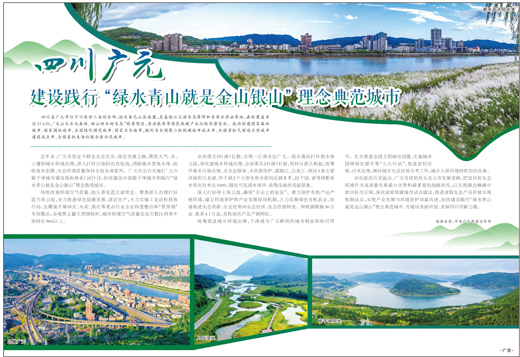 近年来,广元市坚定不移走生态优先、绿色发展之路,聚焦大气、水、土壤和城乡环境治理,深入打好污染防治攻坚战,消除城市黑臭水体、回收废弃农膜,生态环境质量保持全国全省前列。广元市出台实施《广元市最干净城市建设指标体系(试行)》,加快建设中国最干净城市和践行“绿水青山就是金山银山”理念典范城市。