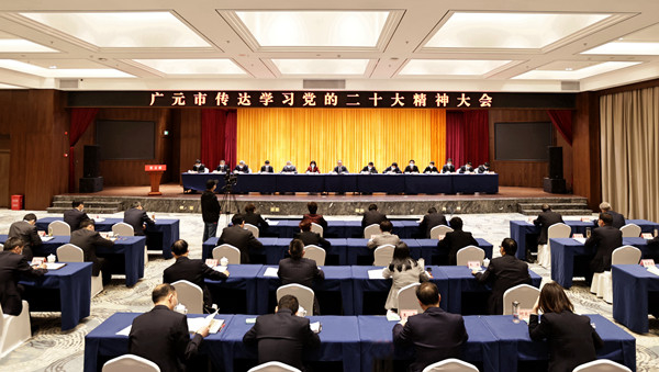何树平要求,要全面动员部署,迅速掀起学习宣传贯彻党的二十大精神热潮。要迅速组织传达学习,各级党委(党组)要切实负起领导责任,通过召开党委(党组)会议、中心组学习会议、干部职工会议等认真传达学习,组织党员干部原文研读、集体学习、深入研讨,确保入脑入心。要精心开展宣传宣讲,认真落实中央、省委关于做好党的二十大精神宣传宣讲工作的部署要求,组织开展好集中宣讲活动,推动精神深入基层、深入人心。要切实抓好培训提能,把学习党的二十大精神作为干部培训的重要内容,分级分类开展教育培训,实现党员干部学习培训全员覆盖。要在全市开展“学习贯彻二十大、拼搏奋进新征程”大讨论,聚焦改革发展重大问题进一步完善治蜀兴川广元实践方案。