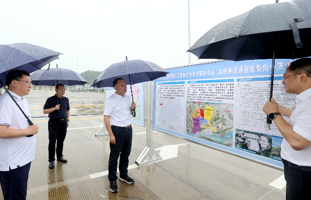 何树平先后来到四川港投新通道川陕甘铁路冷链及粮食供应链产业园、广元港张家坝作业区和红岩作业区、川北红岩港粮食现代物流中心,实地调研广元国际铁路港项目推进及运营、广元港港口建设及运营、张家坝作业区进港铁路专用线规划、临港物流园区建设运营等情况。