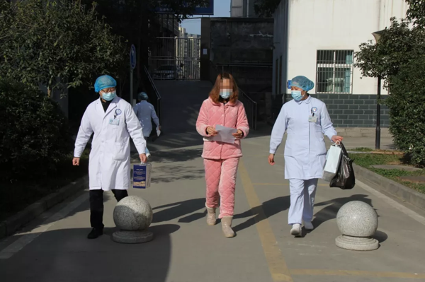 出院患者为一名36岁女性患者,系我市第一例确诊患者田某的妻子,也是我市第二例确诊患者。1月29日,因“咽痛、咳嗽8+天,伴胸闷、气促2+天”转入我院住院治疗,1月29日经省专家组确认该患者为新型冠状病毒肺炎确诊病例。