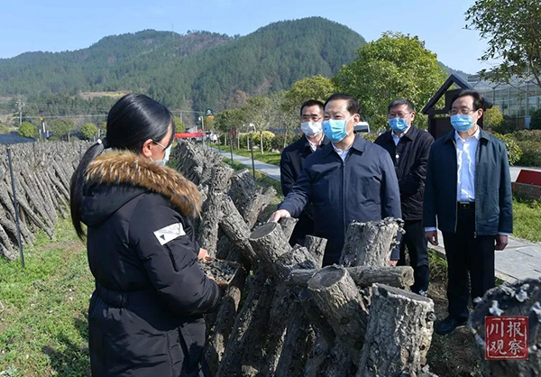 二月二十四日,省委书记、省委应对新型冠状病毒肺炎疫情工作领导小组组长彭清华到广元市青川县木鱼镇红旗食用菌产业园调研,与正在木耳基地劳动的村民交谈,了解产业扶贫带动脱贫群众持续增收情况。本报记者欧阳杰摄